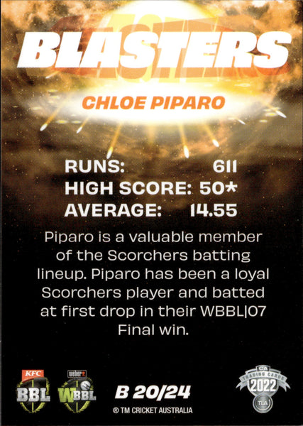 Blasters Insert Set from the 2022/23 Cricket release from TLA. Avaliable in 1 every 18 packs.
