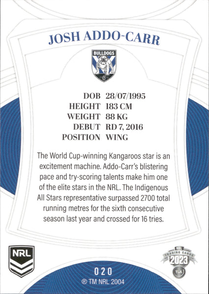 2023 NRL Elite Common Card - 020 - Josh Addo-Carr - Canterbury-Bankstown Bulldogs