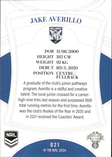 2023 NRL Elite Common Card - 021 - Jake Averillo - Canterbury-Bankstown Bulldogs