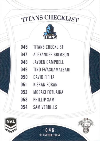 2023 NRL Elite Common Card - 046 - Gold Coast Titans Checklist - Gold Coast Titans