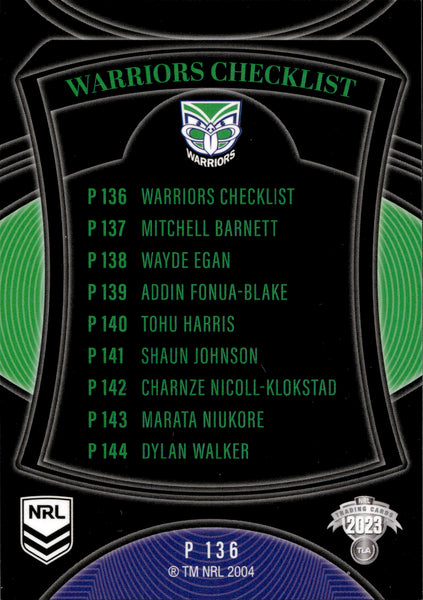 2023 NRL Elite Silver Special - P136 - New Zealand Warriors Checklist - Sydney Roosters