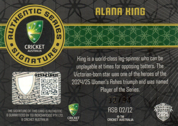 2025-26 Cricket Traders - Authentic Signature Black - ASB 02 - Alana King - 32/94