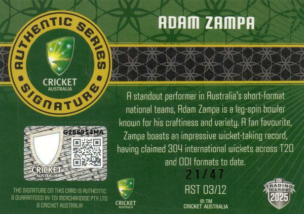 2025-26 Cricket Traders - Authentic Signature Team - AST 03 - Adam Zampa - 21/47