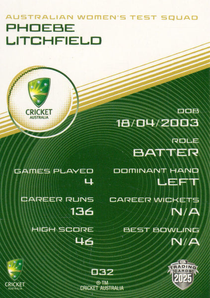 2025-26 Cricket Traders - Common - 032 - Pheobe Litchfield - Australia Women's Test