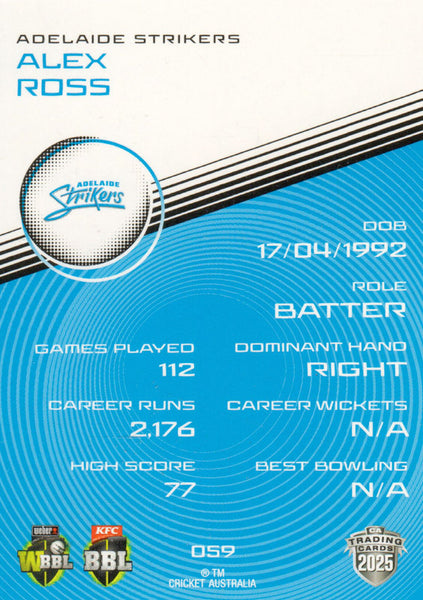 2025-26 Cricket Traders - Common - 059 - Alex Ross - Adelaide Strikers