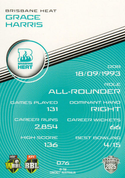 2025-26 Cricket Traders - Common - 076 - Grace Harris - Brisbane Heat