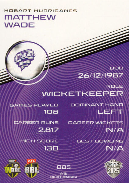 2025-26 Cricket Traders - Common - 085 - Matthew Wade - Hobart Hurricanes
