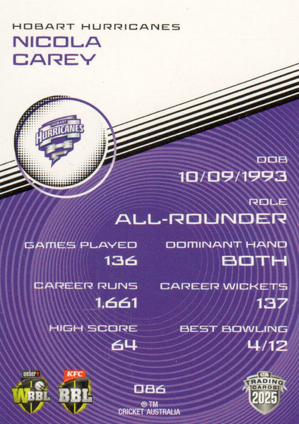2025-26 Cricket Traders - Common - 086 - Nicola Carey - Hobart Hurricanes