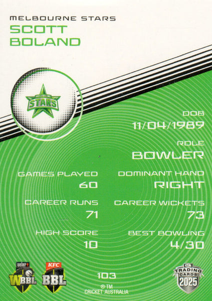 2025-26 Cricket Traders - Common - 103 - Scott Boland - Melbourne Stars