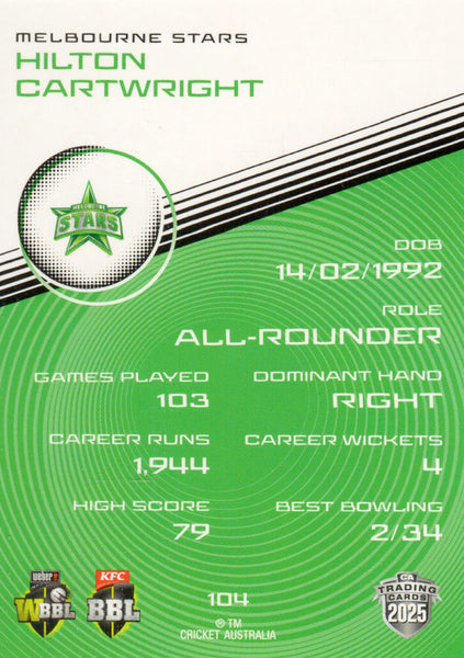 2025-26 Cricket Traders - Common - 104 - Hilton Cartwright - Melbourne Stars