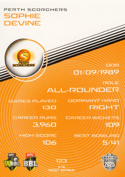 2025-26 Cricket Traders - Common - 123 - Sophie Devine - Perth Scorchers