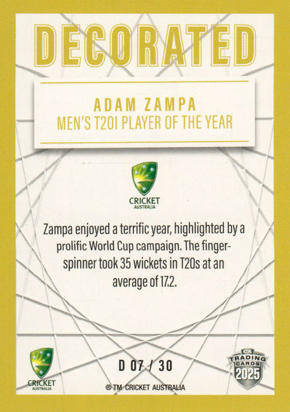 2025-26 Cricket Traders - Decorated - D 07 - Adam Zampa - Australia