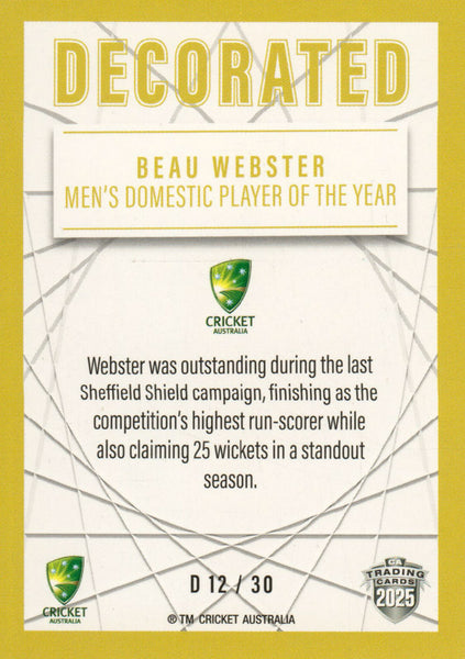 2025-26 Cricket Traders - Decorated - D 12 - Beau Webster - Australia