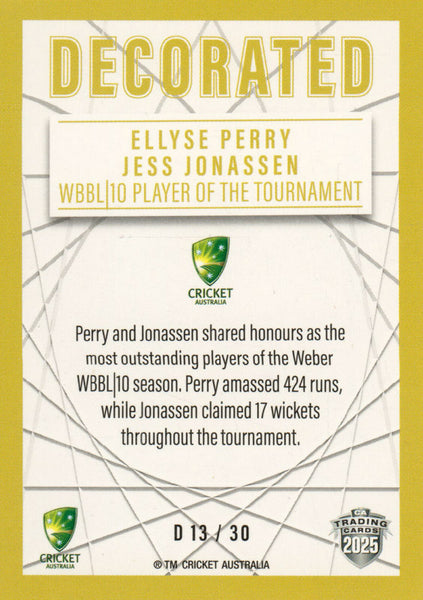 2025-26 Cricket Traders - Decorated - D 13 - Ellyse Perry & Jess Jonassen - Brisbane Heat & Sydney Sixers