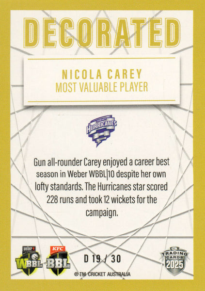 2025-26 Cricket Traders - Decorated - D 19 - Nicola Carey - Hobart Hurricanes