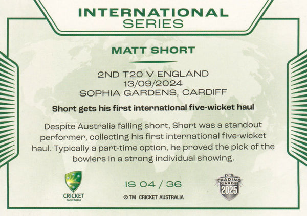 2025-26 Cricket Traders - International Series - IS 04 - Matt Short - Australia