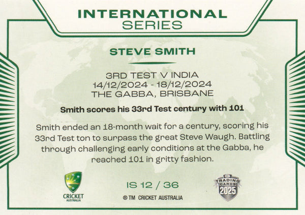 2025-26 Cricket Traders - International Series - IS 12 - Steve Smith - Australia