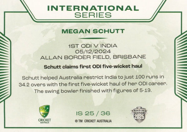 2025-26 Cricket Traders - International Series - IS 25 - Megan Schutt - Australia