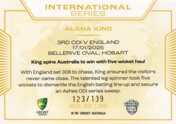 2025-26 Cricket Traders - International Series Gold - ISG 32 - Alana King - 123/139
