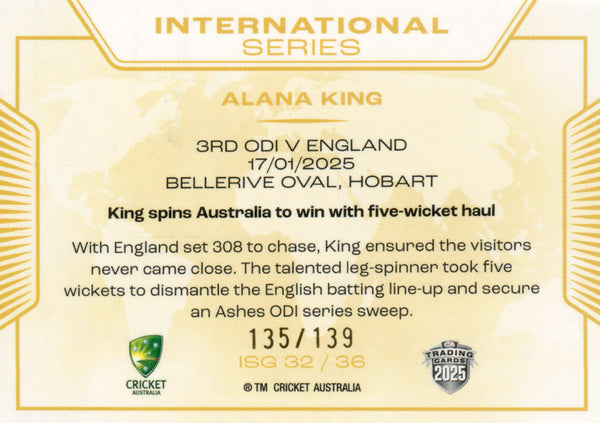 2025-26 Cricket Traders - International Series Gold - ISG 32 - Alana King - 135/139