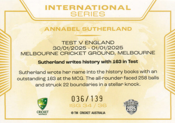 2025-26 Cricket Traders - International Series Gold - ISG 34 - Annabel Sutherland - 036/139
