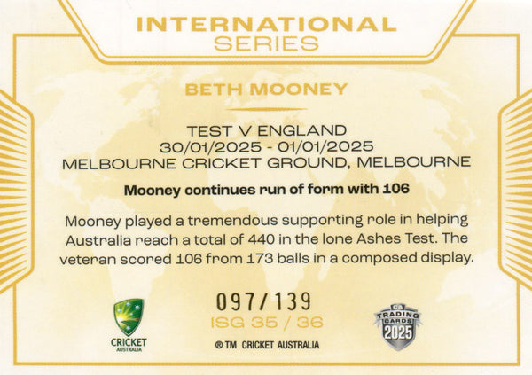 2025-26 Cricket Traders - International Series Gold - ISG 35 - Beth Mooney - 097/139