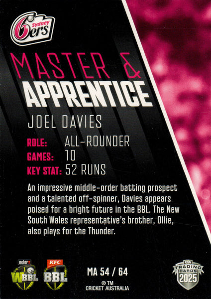 2025-26 Cricket Traders - Master & Apprentice - MA 54 - Joel Davies - Sydney Sixers