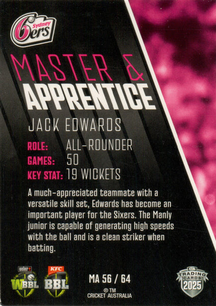 2025-26 Cricket Traders - Master & Apprentice - MA 56 - Jack Edwards - Sydney Sixers
