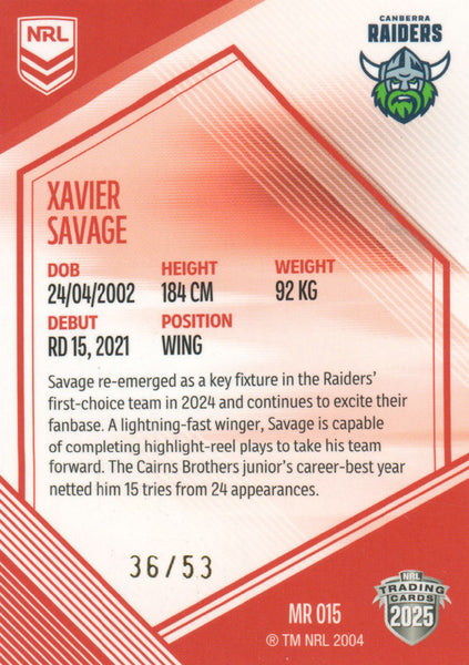 2025 NRL Elite - Mojo Ruby - MR 015 - Xavier Savage - 36/53