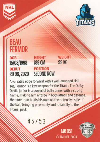 2025 NRL Elite - Mojo Ruby - MR 051 - Beau Fermor - 45/53