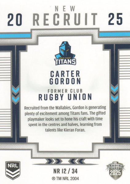 2025 NRL Elite - New Recruit - NR 12 - Carter Gordon - Titans
