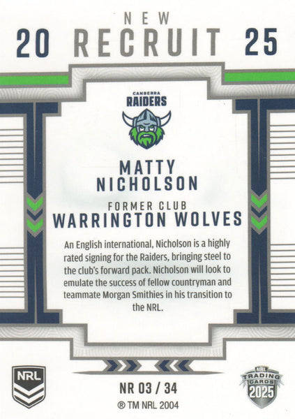 2025 NRL Elite - New Recruit - NR 3 - Matty Nicholson - Raiders