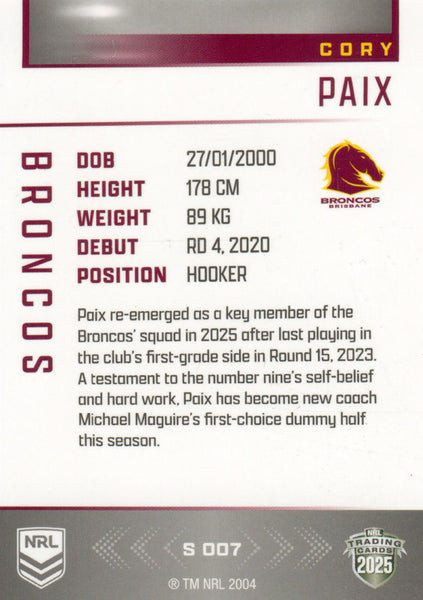 2025 NRL Elite - Silver Specials - P 007 - Cory Paix - Broncos