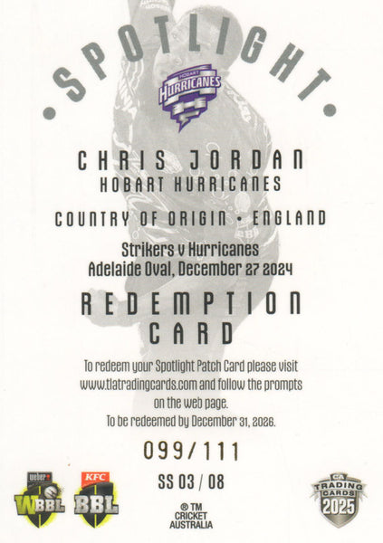 2025-26 Cricket Traders - Spotlight Jersey Patch Silver - SS 03 - Chris Jordan - 099/111