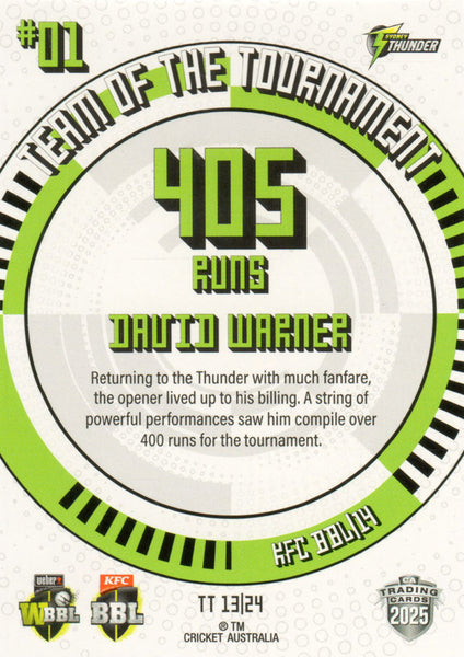 2025-26 Cricket Traders - Team Of The Tournament - TT 13 - David Warner - Sydney Thunder