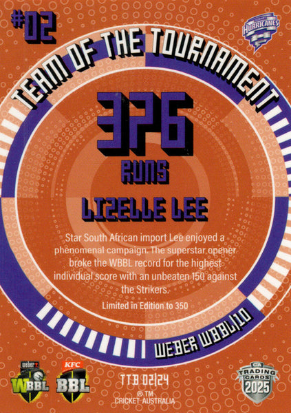 2025-26 Cricket Traders - Team Of The Tournament Bronze - TTB 02 - Lizelle Lee - Hobart Hurricanes