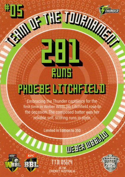 2025-26 Cricket Traders - Team Of The Tournament Bronze - TTB 05 - Phoebe Litchfield - Sydney Thunder