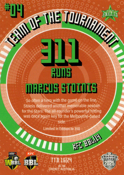 2025-26 Cricket Traders - Team Of The Tournament Bronze - TTB 16 - Marcus Stoinis - Melbourne Stars