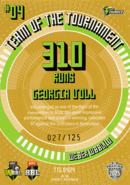 2025-26 Cricket Traders - Team Of The Tournament Gold - TTG 04 - Georgia Voll - 027/125