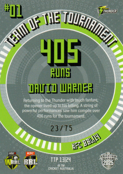 2025-26 Cricket Traders - Team Of The Tournament Pallidium - TTP 13 - David Warner - 23/75