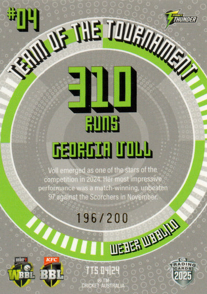 2025-26 Cricket Traders - Team Of The Tournament Silver - TTS 04 - Georgia Voll - 196/200