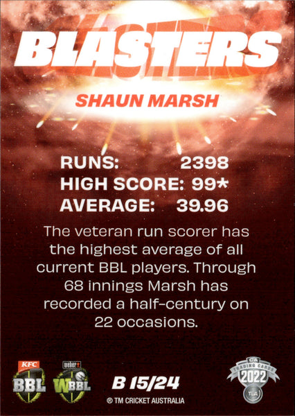 2022-23 Cricket Traders Blasters - B 15 - Shaun Marsh - Melbourne Renegades