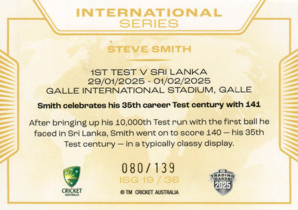 2025-26 Cricket Traders - International Series Gold - ISG 19 - Steve Smith - 080/139