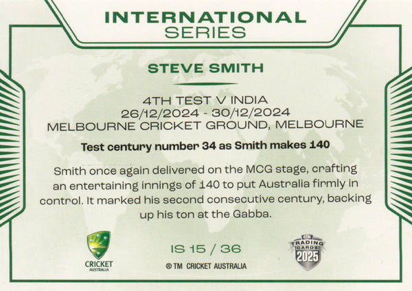 2025-26 Cricket Traders - International Series - IS 15 - Steve Smith - Australia