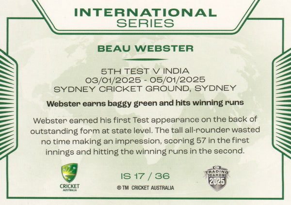 2025-26 Cricket Traders - International Series - IS 17 - Beau Webster - Australia