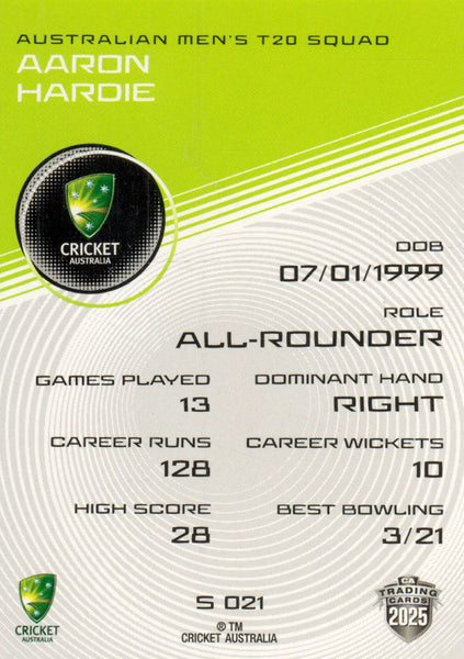 2025-26 Cricket Traders - Silver - S 021 - Aaron Hardie - Australia Men's T20