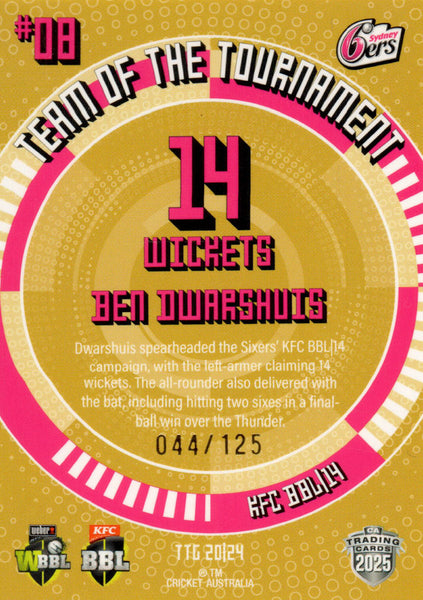 2025-26 Cricket Traders - Team Of The Tournament Gold - TTG 20 - Ben Dwarshuis - 044/125