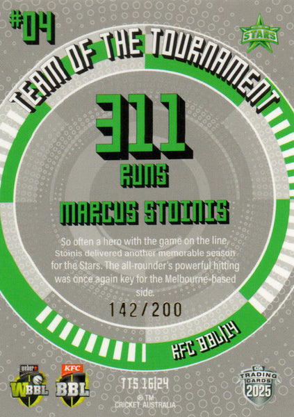 2025-26 Cricket Traders - Team Of The Tournament Silver - TTS 16 - Marcus Stoinis - 142/200